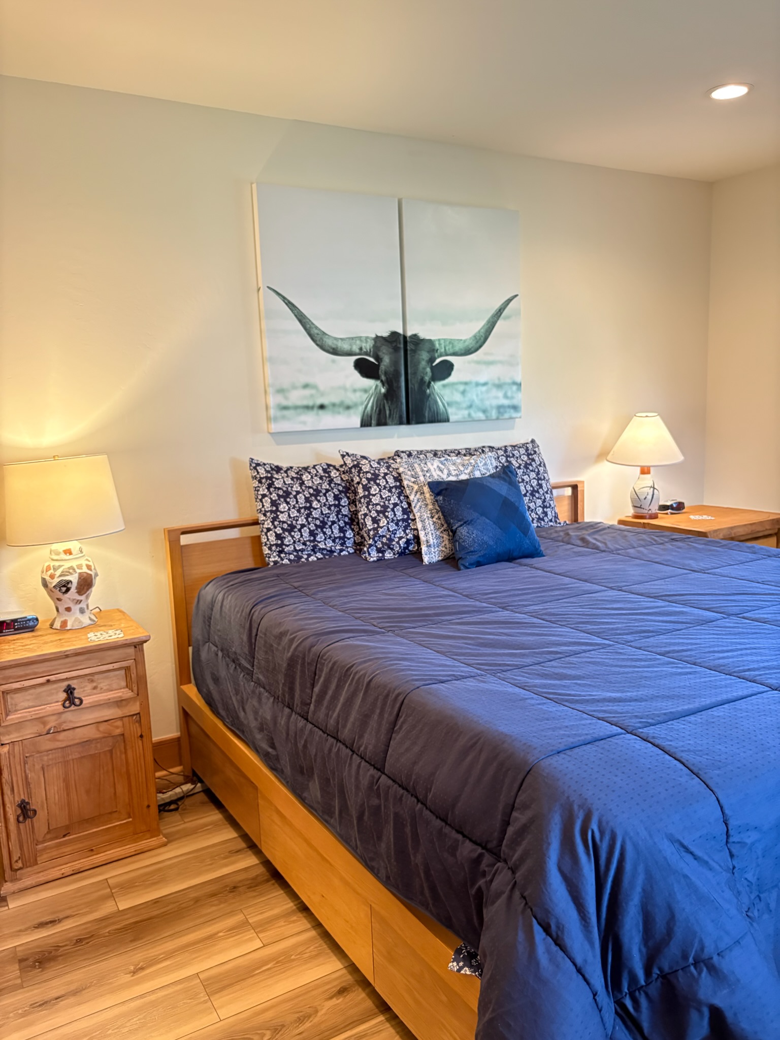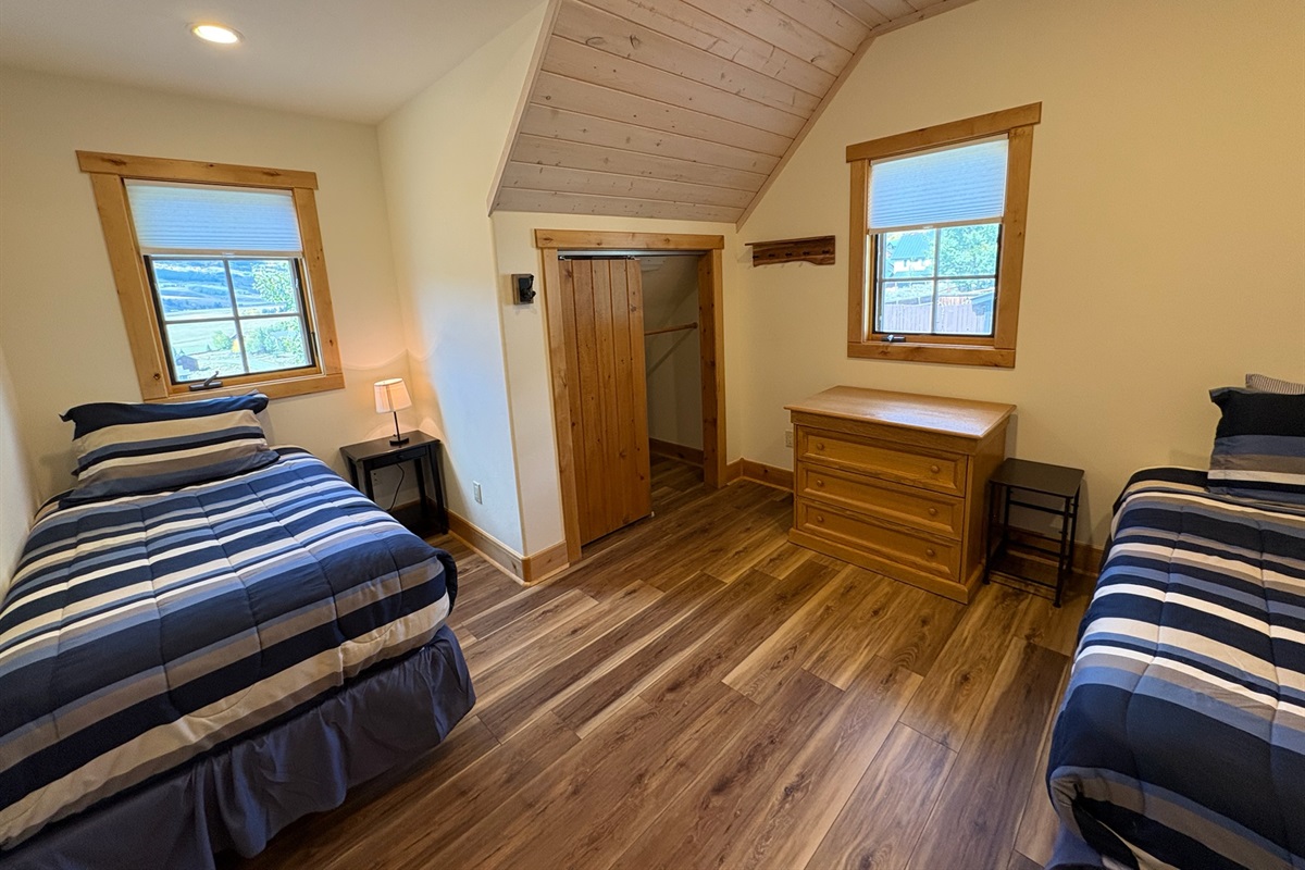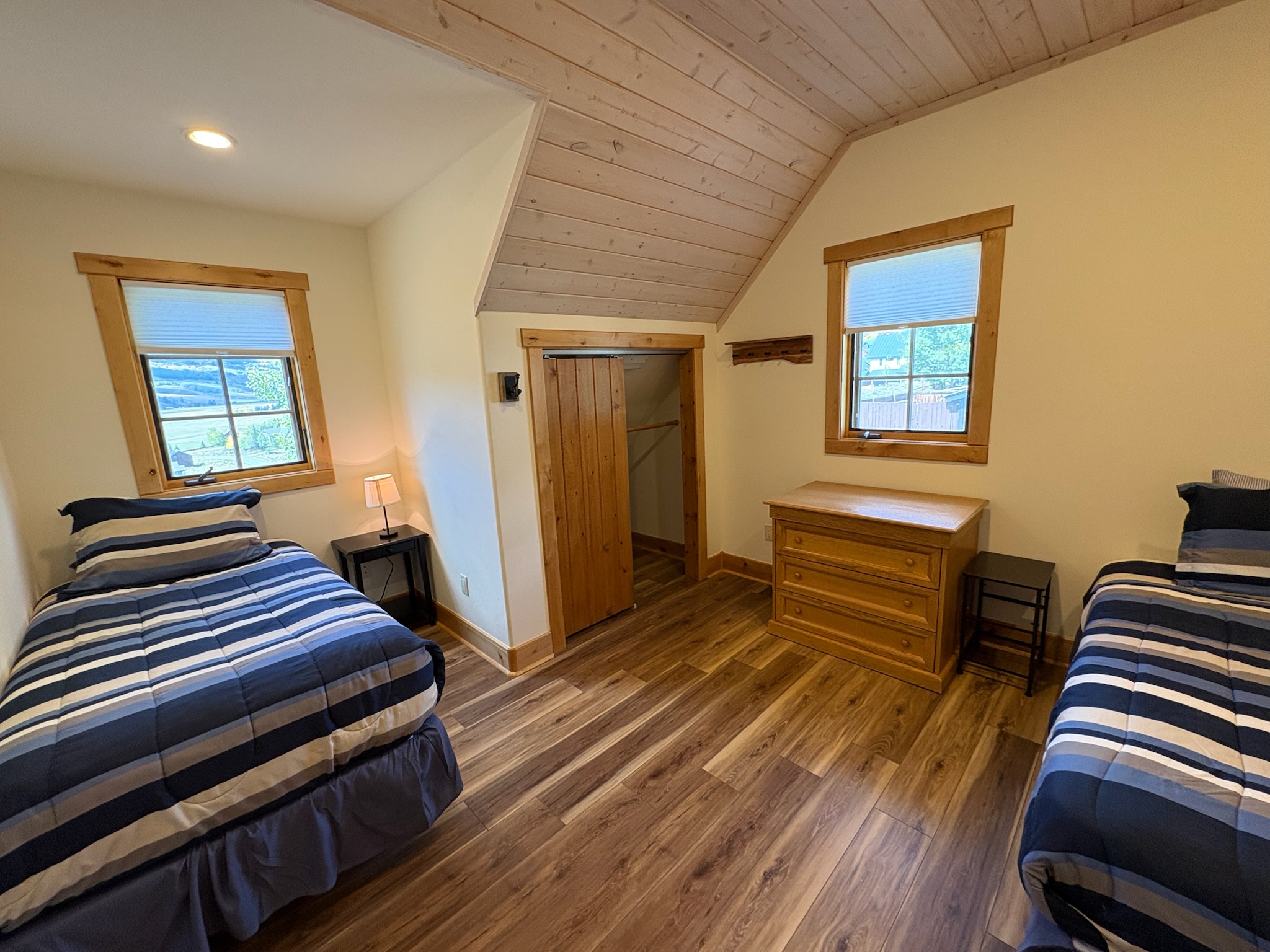 The secondary bedrooms are located upstairs. One bedroom has 2 twin beds. The other is an oversized bedroom w/ a Queen plus a twin bed. This bedroom also have an oversized closet.