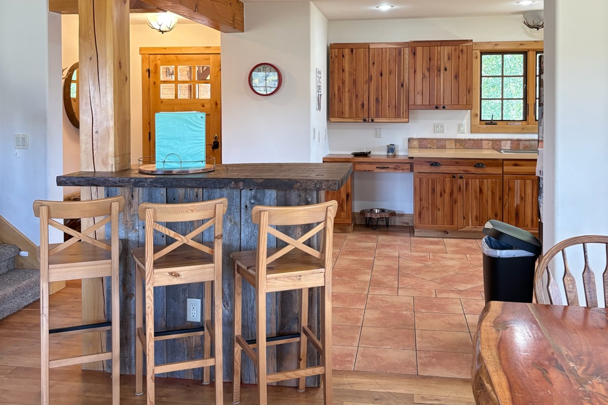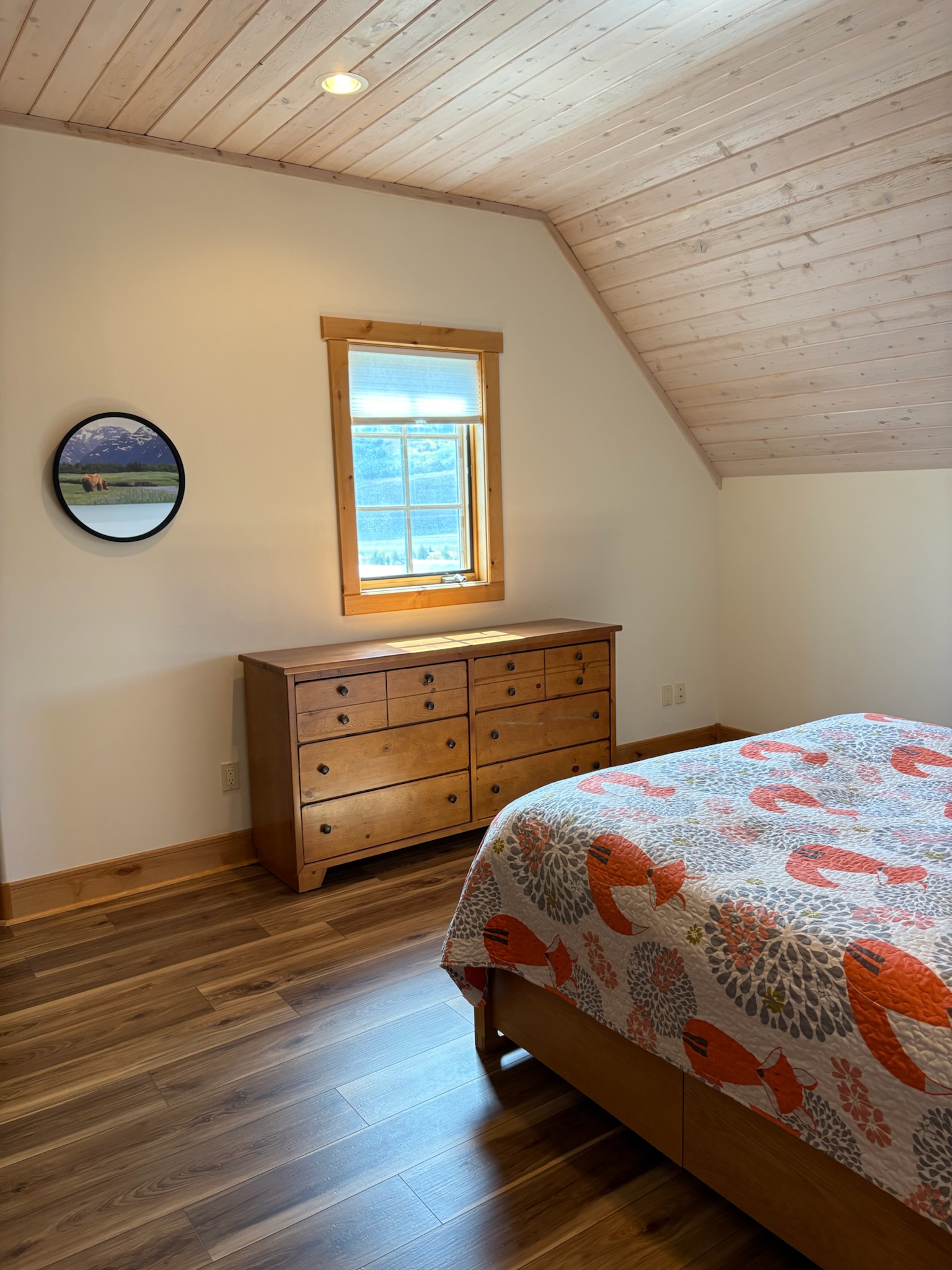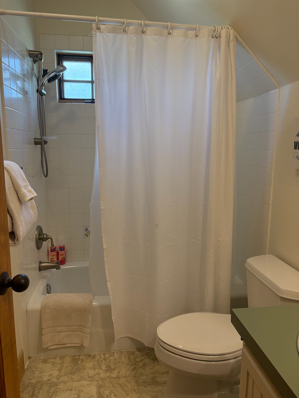 The home has an attached apartment with a separate entrance. There is a long term tenant living there from time to time. Guests must share the driveway with the tenant. The tenant uses the river side of the driveway. Guests can use the whole garage and the left side of the driveway. Please do not block the tenants parking spot or vehicle.